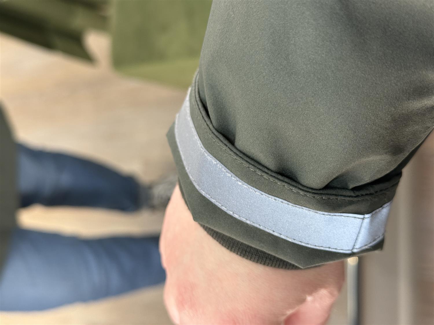 Jakken er produsert i et teknisk stoff som er vanntett, vindtett og puster.