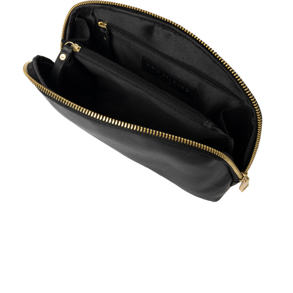 Introducing the Hoshi cosmetic pouch, a quintessentially urban accessory designed to organize and enhance your daily essentials. Crafted from 100% premium leather, this elegantly structured pouch features shiny gold metal hardware, combining durability with luxury.