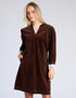 Denne kjolen i myk kordfløyel kombinerer komfort med en feminin silhuett. V-halsen gir et flatterende uttrykk, mens puffermer tilfører et subtilt romantisk preg. Halvlange ermer med litt bred strikk ytterst. Stikklommer i sidene gir en praktisk og avslappet følelse, perfekt for hverdagsbruk så vel som mer pyntede anledninger.