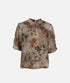 Denne blomstrete blusen kombinerer romantikk og moderne detaljer. Høy hals med nøkkelhullsåpning og to knapper bak gir et feminint preg. Overdelen er fóret for en behagelig passform, mens de transparente ermene med elastiske draperinger gir luft og bevegelse.