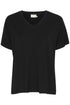 KAfida V-Neck T-Shirt i dyp svart er et must-have plagg for enhver garderobe. Laget av bærekraftig LENZING™ ECOVERO™ viskose, kombinerer denne t-skjorten komfort med stil, perfekt for både hverdagsbruk og mer formelle anledninger.