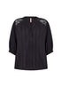 SC-RAFAELLA 3 er en stilig skjorte designet med fokus på komfort og slitestyrke, laget av 100 % økologisk bomull. Denne skjorten har blondedetaljer på skuldrene, V-hals uten krage, knappelukking foran og trekvartlange ermer med elastiske mansjetter. Den avslappede passformen gjør den enkel å kombinere med skreddersydde bukser eller avslappede jeans for et diskré utseende. Sammensetning EN: 100 % økologisk bomull