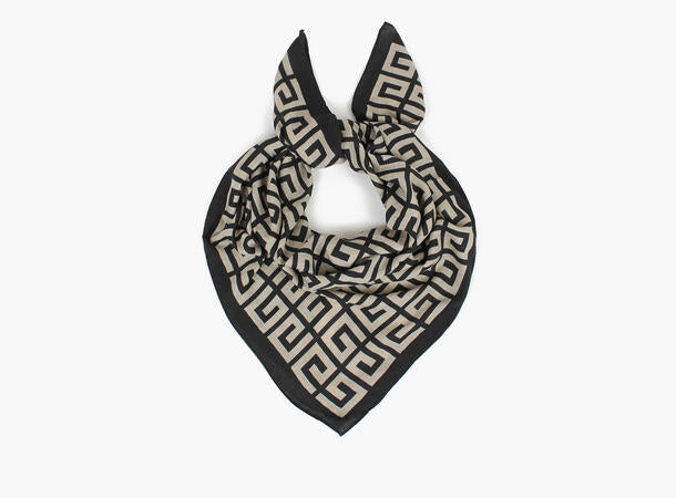 Firkantet skjerf i jordtoner med Gresk Meander-mønster.