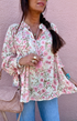 Susanne Blouse – cerise viskosblus med offwhite blommor & boho-detaljer