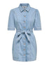 ONLVIBBE SS BELT DNM DRESS SIK er en stilren kjole i lyseblå denim, laget av 100% bomull. Denne kjolen kombinerer komfort med et moderne design, perfekt for varme dager.